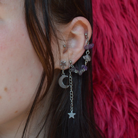 Star and Moon Dandle Drop Earrings